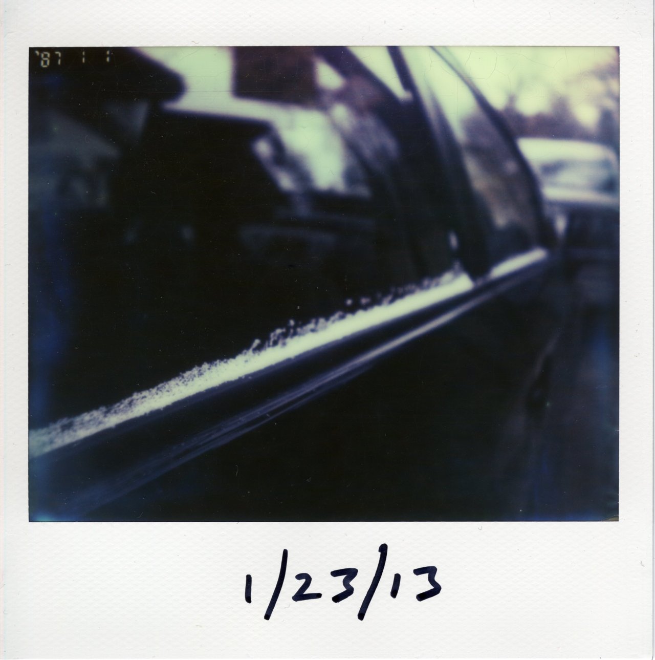 Snow Collecting on the Window of My Car