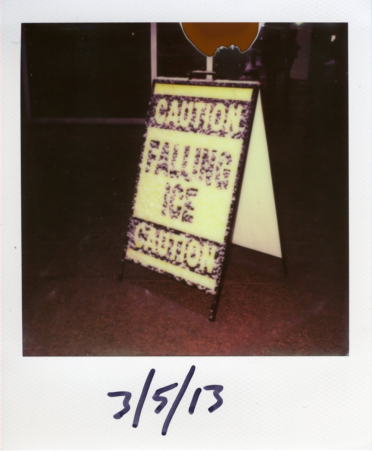 Tuesday it pretty much snowed non-stop leaving North Michigan Avenue was a deathtrap of falling ice and snow from buildings, this sign was posted very near the beginning of it in a shielded area slightly in from the sidewalk.
