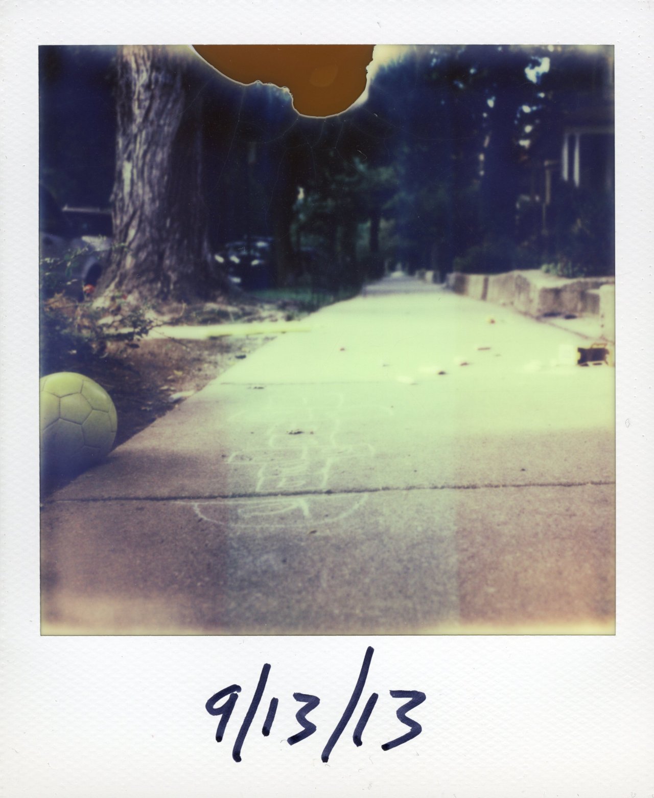 Walking up my street home I saw signs that moments earlier children had been playing ball and drawing with chalk. I couldn’t help but stop and photograph the remainders and smile.
