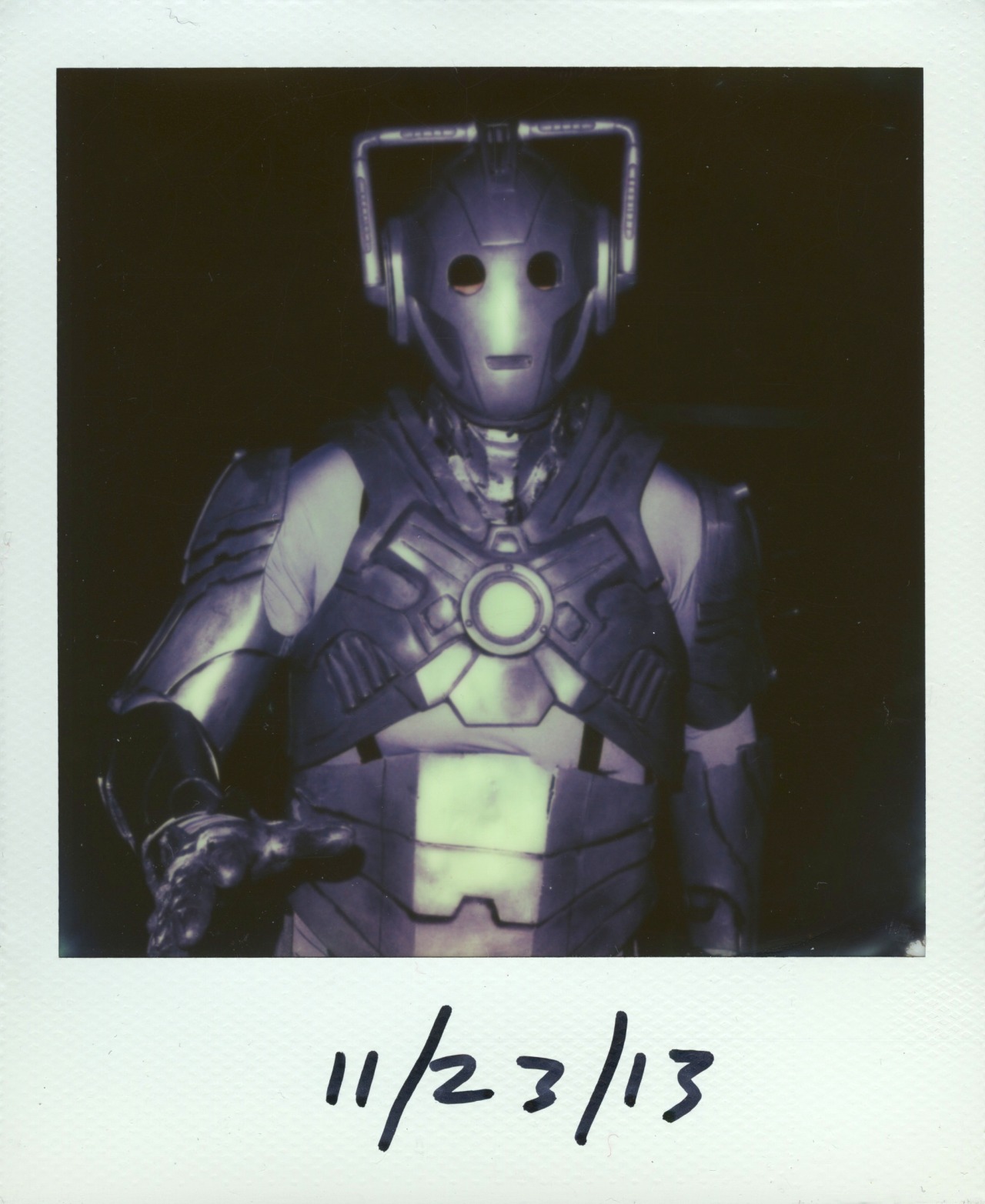 Saturday was Doctor Who’s 50th anniversary. Beth Ann and I went to a special 3D screening of the 50th anniversary episode in Evanston. While we were there we ran into this guy who was in a full Cyberman custom. Pretty impressive. He actually watched the whole episode this way as well.