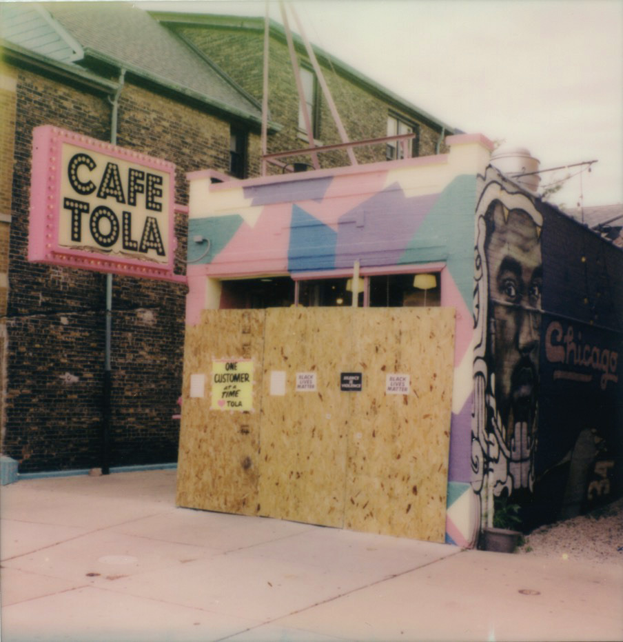 Cafe Tola is a small coffee and empanda shop on Southport Avenue that has expanded over the years into a chain of stores all over Chicago. This one however, is near and dear to my heart. In light of everything going on they’ve boarded up their doors and windows, but they are still operating from the side entrance one customer at a time. Definitely one of my favorite local businesses and I’m glad to see they’ve found a way to keep operating and serving the public.