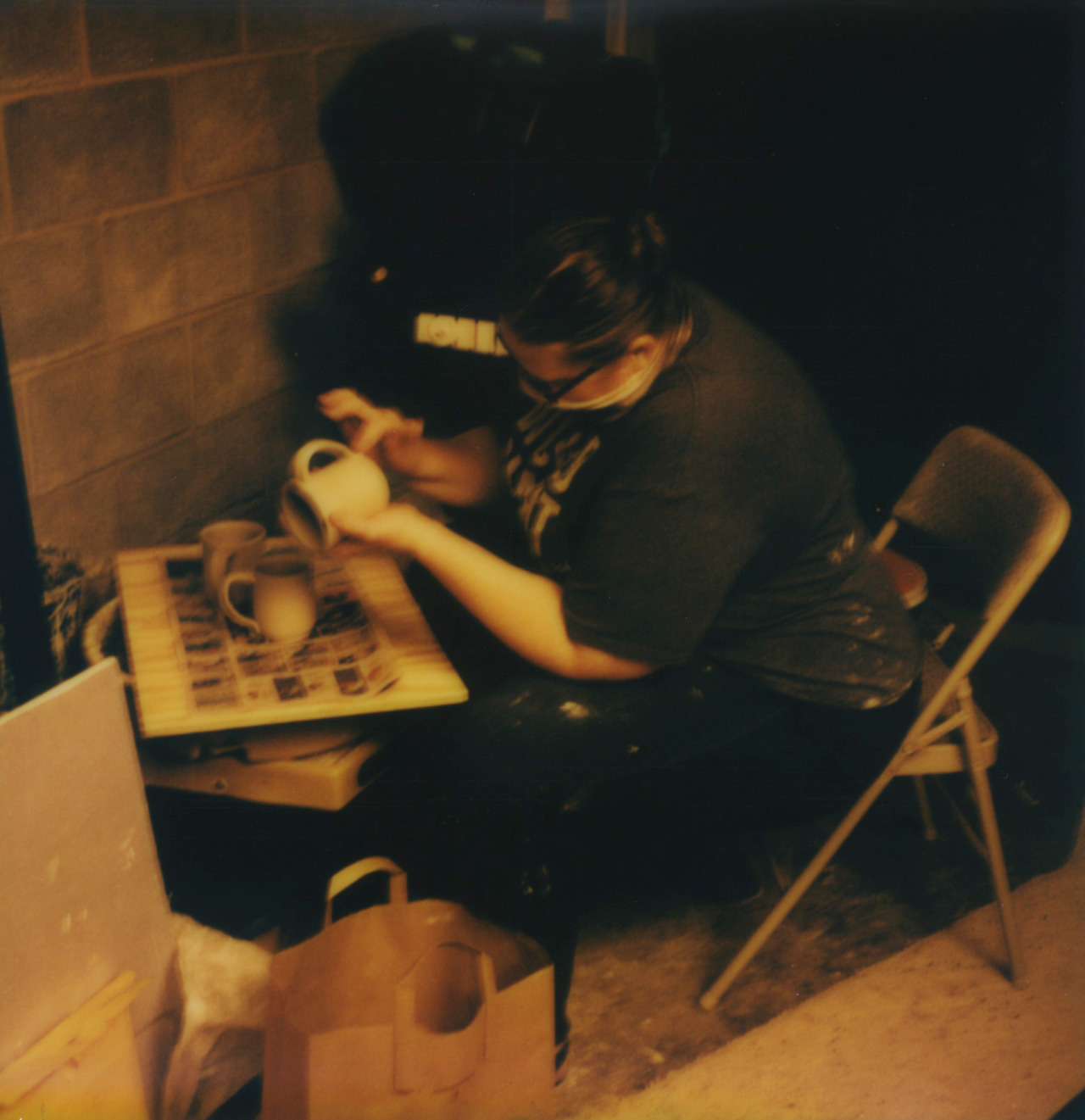 We are renting a pottery wheel from Lillstreet so that Beth Ann can do pottery work even though Lillstreet does not have open studio hours. As such, we’ve converted out garage to be a workspace, and Leslie came over the other night and took advantage of it as well.