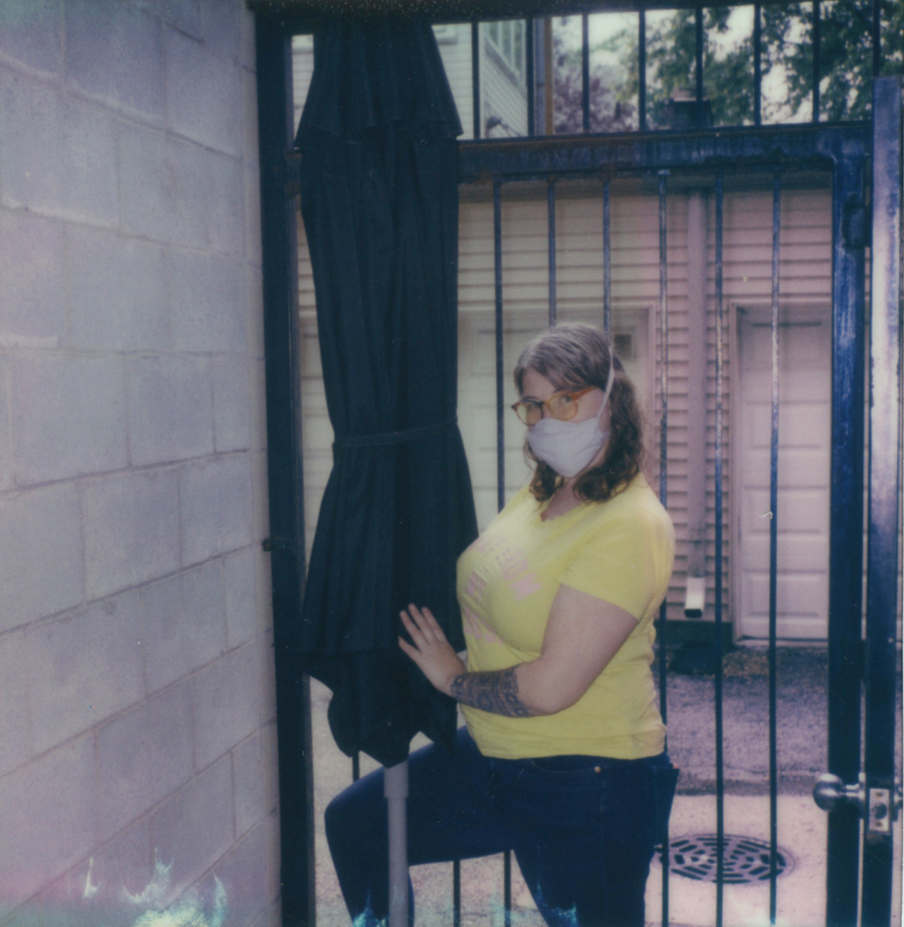 Our friend Molly is moving and has no need for her patio umbrella or firepit any longer so she gave them to us. Here she is modeling with the umbrella.