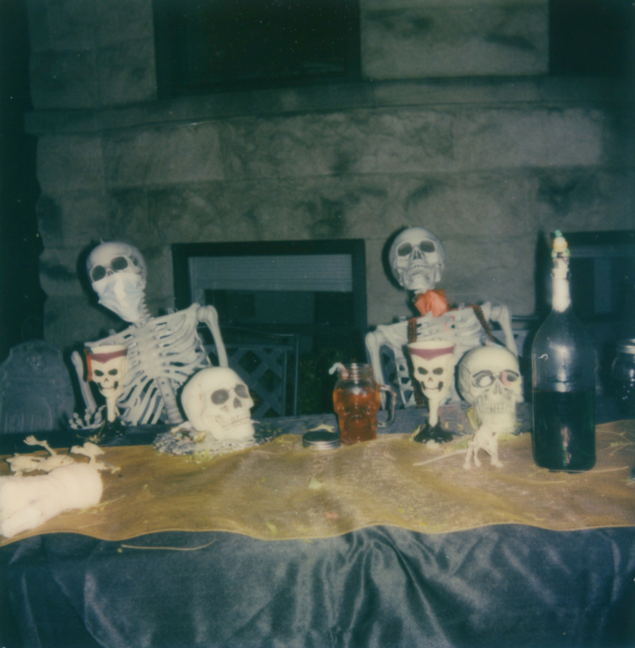 Our neighbors set up a grim dinner party on their front yard behind their fence. With everyone concerned about COVID for the holidays it felt clever and maybe a bit too on the nose.