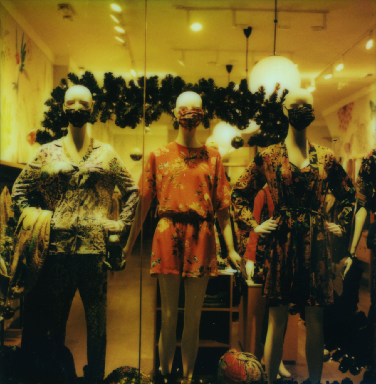 Caught this masked holiday window display while running some errands and it hit me as surreal.