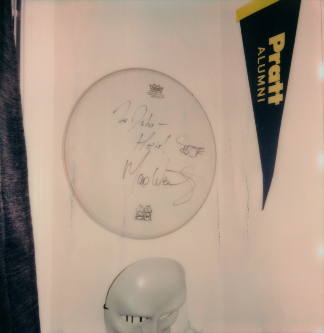 Worked on cleaning up the office and got these three things hung: Banner from Pratt, my Max Weinberg autographed drum from ‘Late Night with Conan O’Brien’ and a mask from ‘Sleep No More,’ an immersive theater show that probably will never be able to run again in our post-COVID world.
