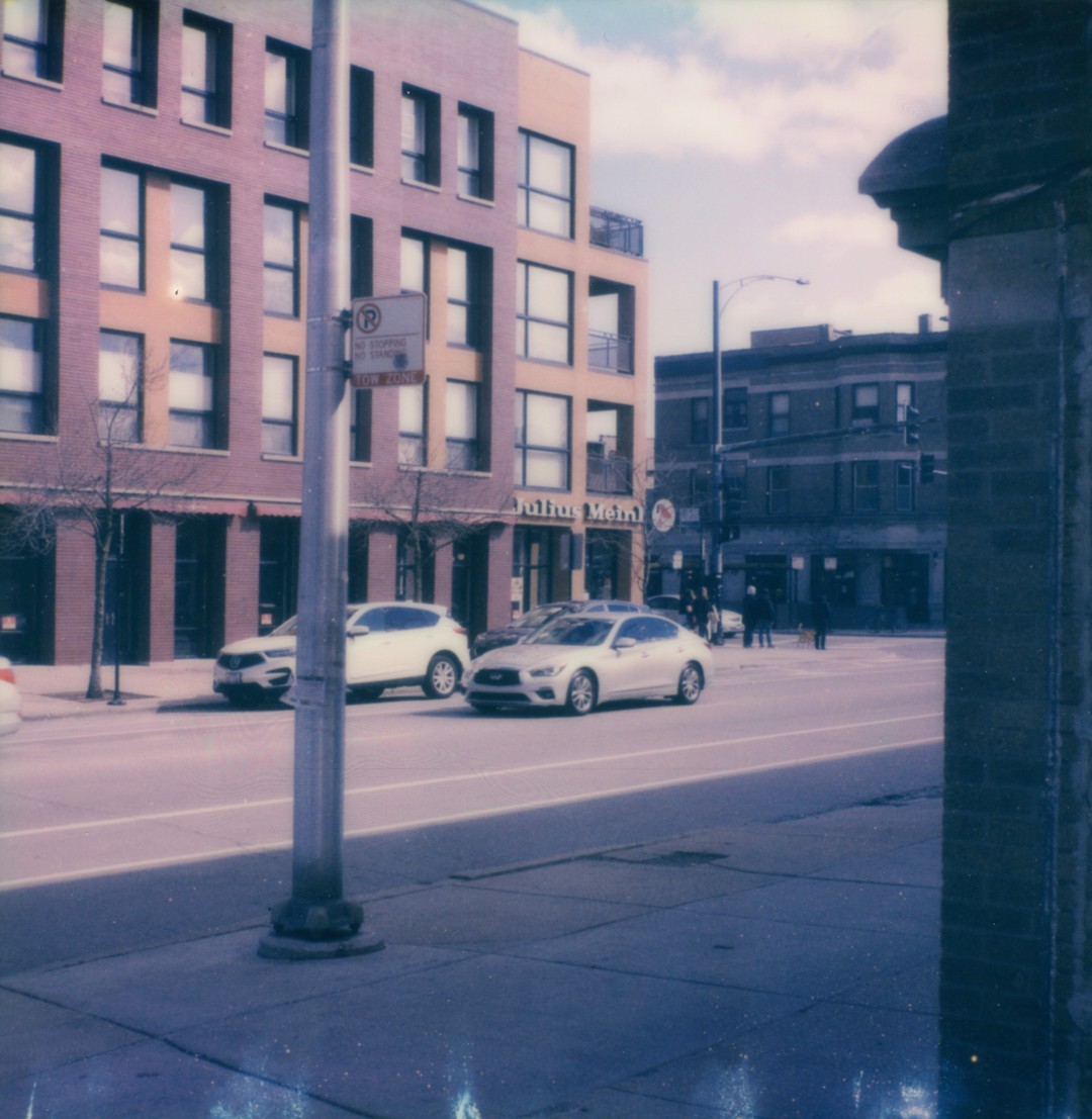 Southport and Irving, 23 January 2021Polaroid SLR 680 SE/Polaroid Color 600 I biked down to the post office to check my PO Box and ship out a print order. Decided to stop and appreciate the street corner.